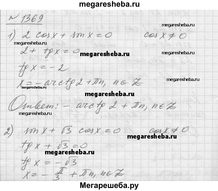 Подробный решебник (ГДЗ) по Алгебре за 10‐11 (десятый‐одиннадцатый) класс - готовый ответ упражнение - 1369. Авторы учебника: Алимов, Колягин, Ткачева, Базовый и углубленный уровень. Издательство: Просвещение 2015-2024.