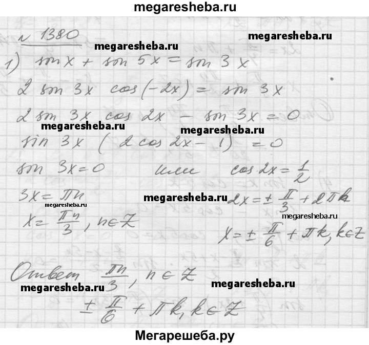 Подробный решебник (ГДЗ) по Алгебре за 10‐11 (десятый‐одиннадцатый) класс - готовый ответ упражнение - 1380. Авторы учебника: Алимов, Колягин, Ткачева, Базовый и углубленный уровень. Издательство: Просвещение 2015-2024.
