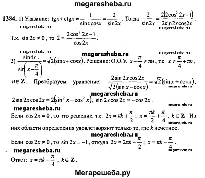 Подробный решебник (ГДЗ) по Алгебре за 10‐11 (десятый‐одиннадцатый) класс - готовый ответ упражнение - 1384. Авторы учебника: Алимов, Колягин, Ткачева, Базовый и углубленный уровень. Издательство: Просвещение 2015-2024.