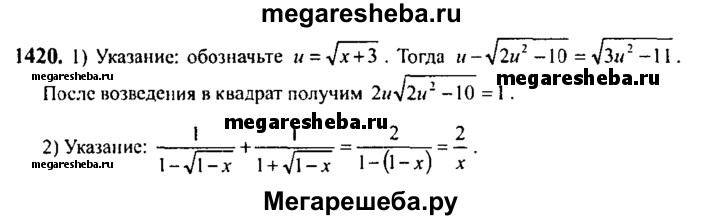 Подробный решебник (ГДЗ) по Алгебре за 10‐11 (десятый‐одиннадцатый) класс - готовый ответ упражнение - 1420. Авторы учебника: Алимов, Колягин, Ткачева, Базовый и углубленный уровень. Издательство: Просвещение 2015-2024.