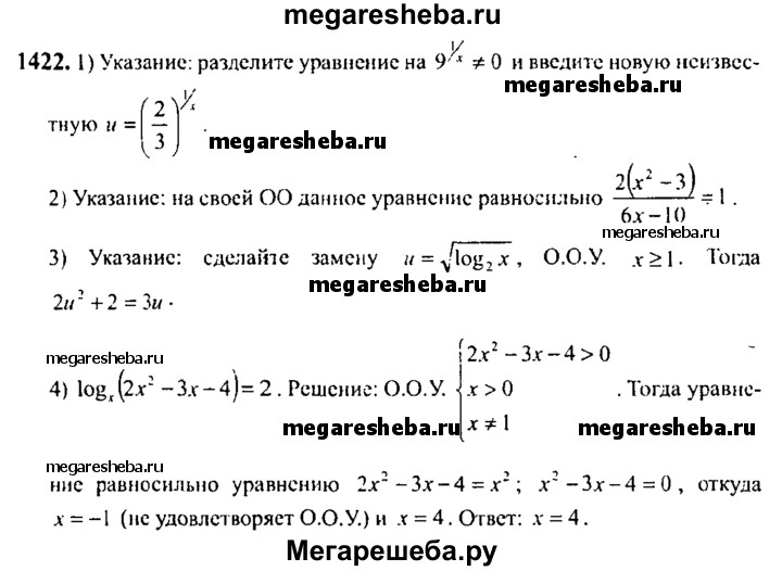 Подробный решебник (ГДЗ) по Алгебре за 10‐11 (десятый‐одиннадцатый) класс - готовый ответ упражнение - 1422. Авторы учебника: Алимов, Колягин, Ткачева, Базовый и углубленный уровень. Издательство: Просвещение 2015-2024.