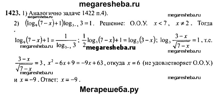 Подробный решебник (ГДЗ) по Алгебре за 10‐11 (десятый‐одиннадцатый) класс - готовый ответ упражнение - 1423. Авторы учебника: Алимов, Колягин, Ткачева, Базовый и углубленный уровень. Издательство: Просвещение 2015-2024.