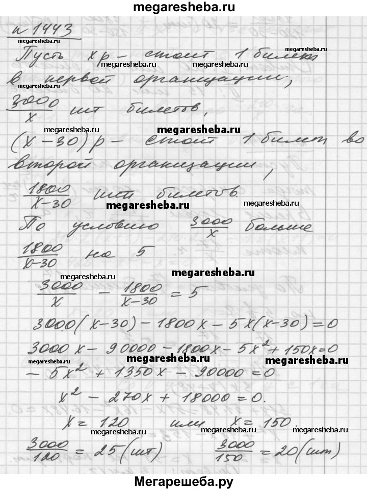 Подробный решебник (ГДЗ) по Алгебре за 10‐11 (десятый‐одиннадцатый) класс - готовый ответ упражнение - 1443. Авторы учебника: Алимов, Колягин, Ткачева, Базовый и углубленный уровень. Издательство: Просвещение 2015-2024.