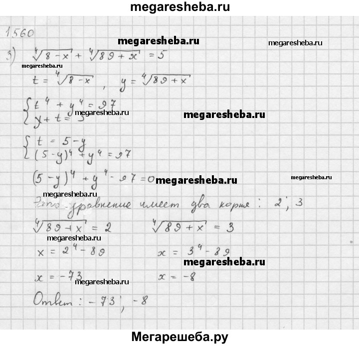 Подробный решебник (ГДЗ) по Алгебре за 10‐11 (десятый‐одиннадцатый) класс - готовый ответ упражнение - 1560. Авторы учебника: Алимов, Колягин, Ткачева, Базовый и углубленный уровень. Издательство: Просвещение 2015-2024.
