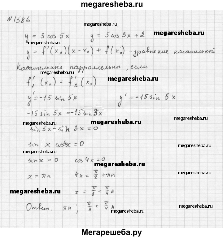 Подробный решебник (ГДЗ) по Алгебре за 10‐11 (десятый‐одиннадцатый) класс - готовый ответ упражнение - 1586. Авторы учебника: Алимов, Колягин, Ткачева, Базовый и углубленный уровень. Издательство: Просвещение 2015-2024.