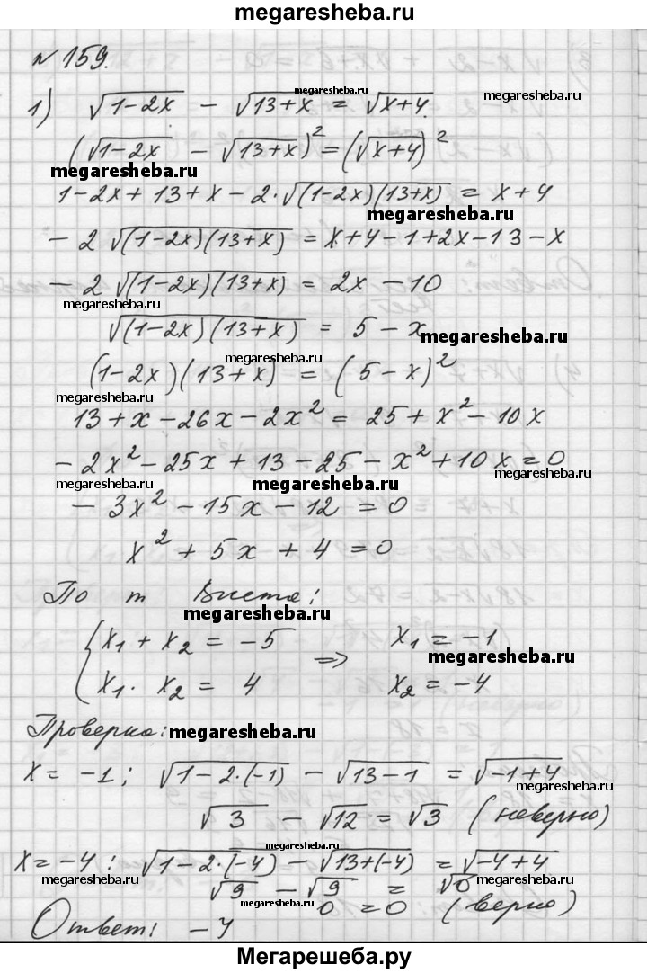 Подробный решебник (ГДЗ) по Алгебре за 10‐11 (десятый‐одиннадцатый) класс - готовый ответ упражнение - 159. Авторы учебника: Алимов, Колягин, Ткачева, Базовый и углубленный уровень. Издательство: Просвещение 2015-2024.