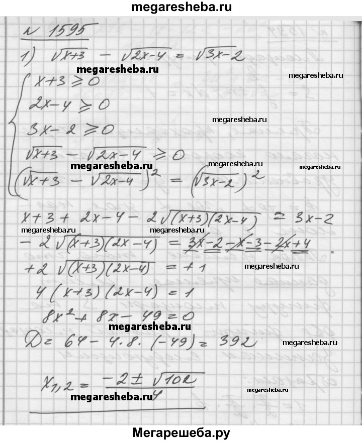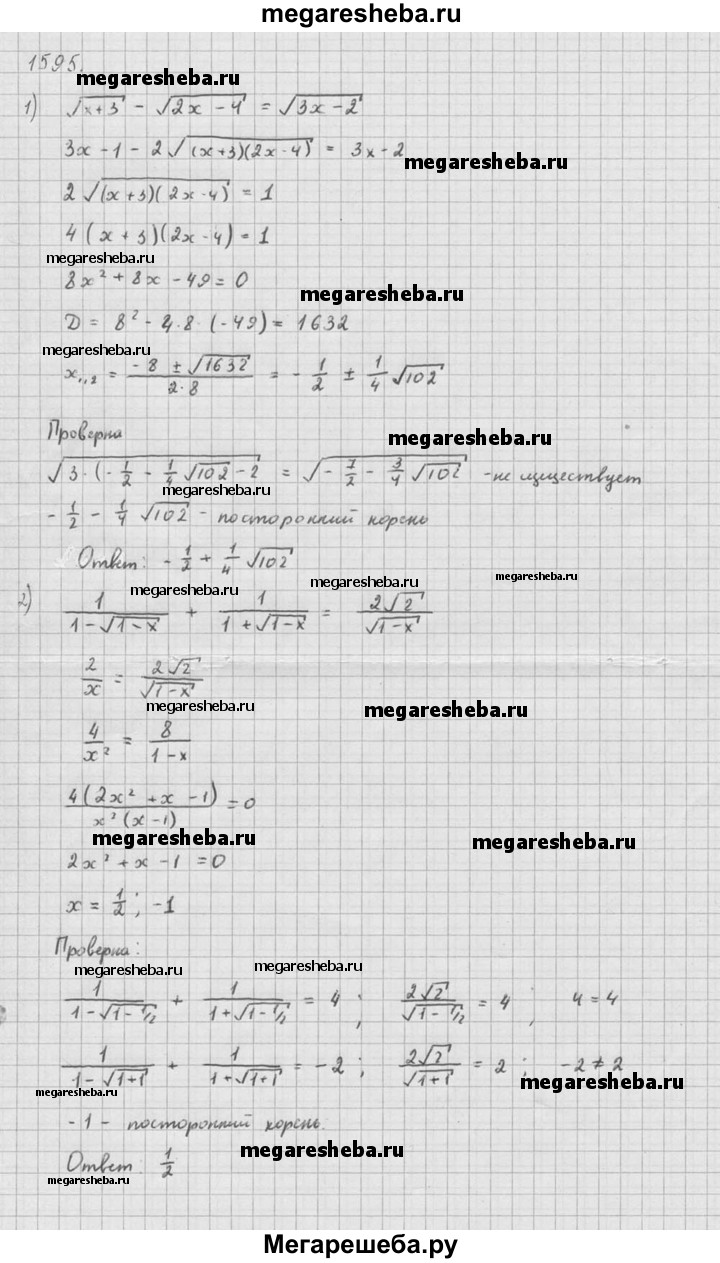 Подробный решебник (ГДЗ) по Алгебре за 10‐11 (десятый‐одиннадцатый) класс - готовый ответ упражнение - 1595. Авторы учебника: Алимов, Колягин, Ткачева, Базовый и углубленный уровень. Издательство: Просвещение 2015-2024.