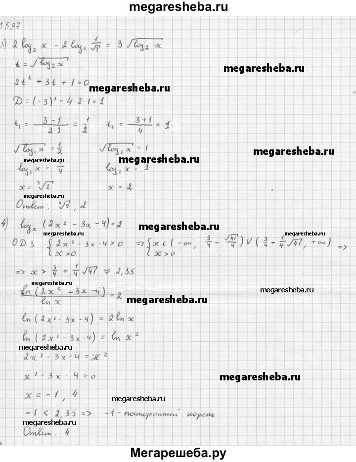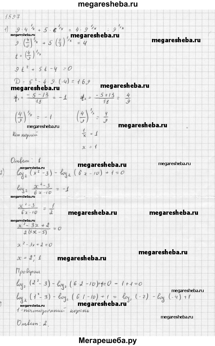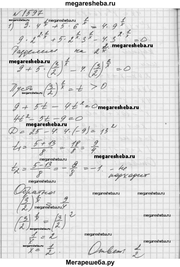 Подробный решебник (ГДЗ) по Алгебре за 10‐11 (десятый‐одиннадцатый) класс - готовый ответ упражнение - 1597. Авторы учебника: Алимов, Колягин, Ткачева, Базовый и углубленный уровень. Издательство: Просвещение 2015-2024.