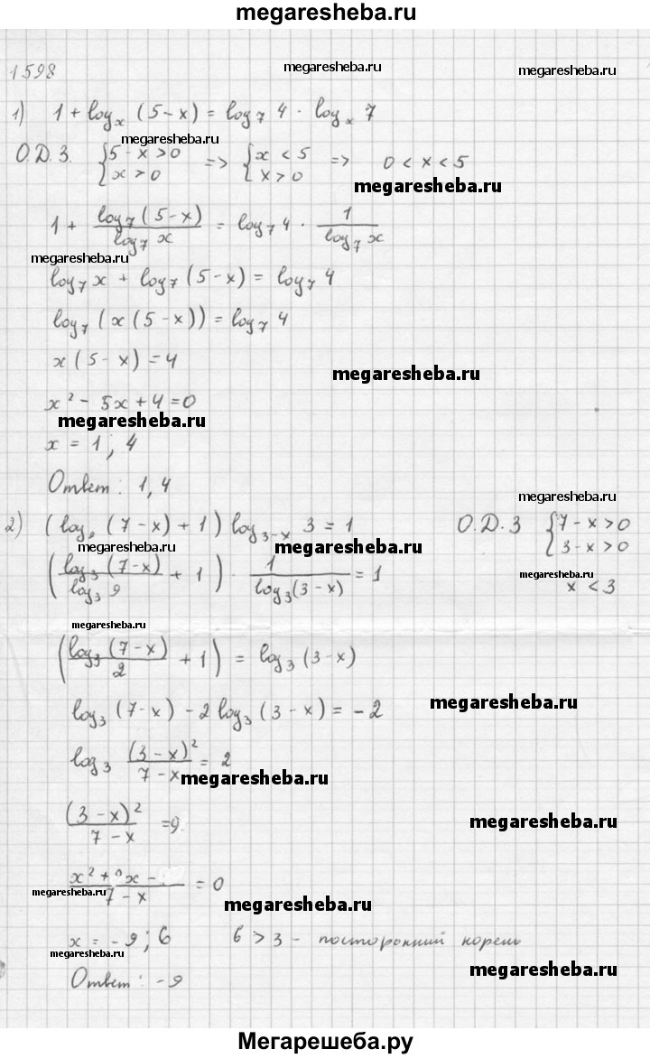 Подробный решебник (ГДЗ) по Алгебре за 10‐11 (десятый‐одиннадцатый) класс - готовый ответ упражнение - 1598. Авторы учебника: Алимов, Колягин, Ткачева, Базовый и углубленный уровень. Издательство: Просвещение 2015-2024.