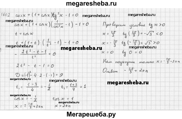 Подробный решебник (ГДЗ) по Алгебре за 10‐11 (десятый‐одиннадцатый) класс - готовый ответ упражнение - 1602. Авторы учебника: Алимов, Колягин, Ткачева, Базовый и углубленный уровень. Издательство: Просвещение 2015-2024.