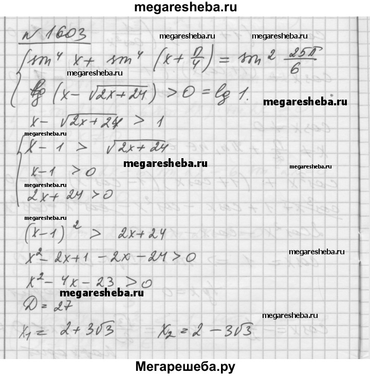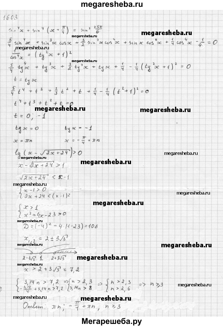 Подробный решебник (ГДЗ) по Алгебре за 10‐11 (десятый‐одиннадцатый) класс - готовый ответ упражнение - 1603. Авторы учебника: Алимов, Колягин, Ткачева, Базовый и углубленный уровень. Издательство: Просвещение 2015-2024.