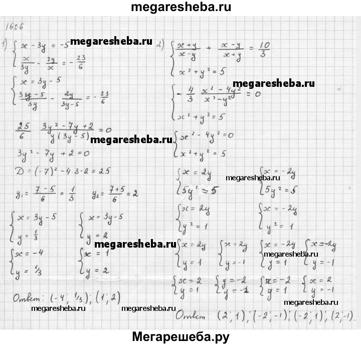 Подробный решебник (ГДЗ) по Алгебре за 10‐11 (десятый‐одиннадцатый) класс - готовый ответ упражнение - 1606. Авторы учебника: Алимов, Колягин, Ткачева, Базовый и углубленный уровень. Издательство: Просвещение 2015-2024.