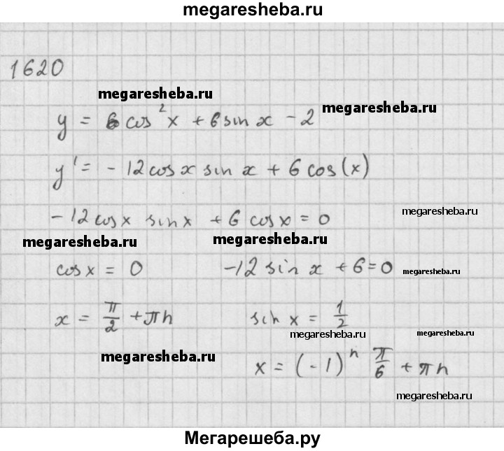 Подробный решебник (ГДЗ) по Алгебре за 10‐11 (десятый‐одиннадцатый) класс - готовый ответ упражнение - 1620. Авторы учебника: Алимов, Колягин, Ткачева, Базовый и углубленный уровень. Издательство: Просвещение 2015-2024.