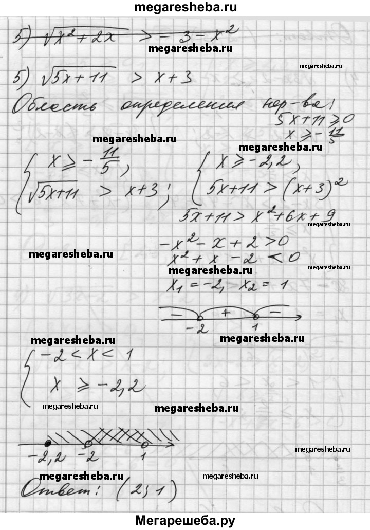 170. Решить неравенство 1) √х + 2 > √4-х; 2) √3 + 2х ≥ √х+1; 3. √2х-5 < √5х + 4; 4) √Зх-2 > х-2; 5) √5х + 11 > х + З; 6) √3-х < √Зх-5.