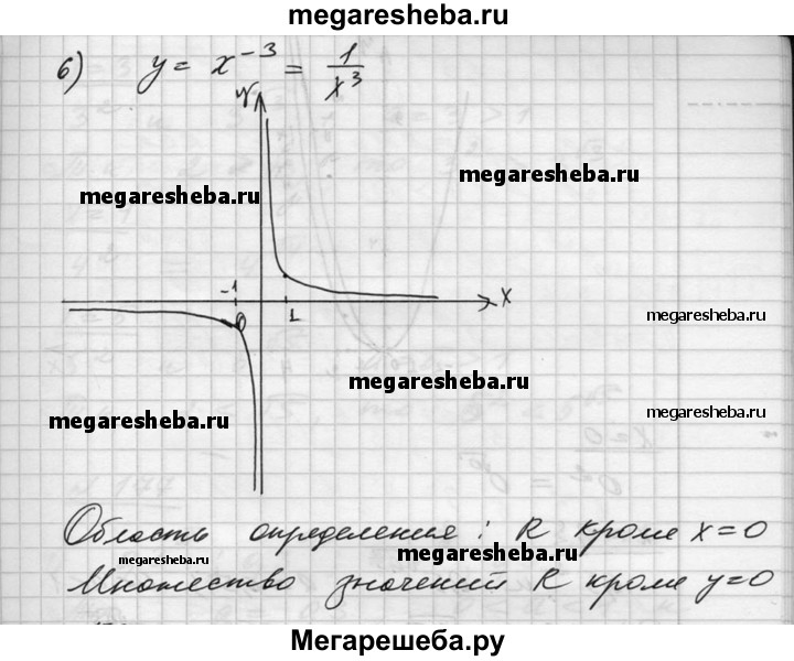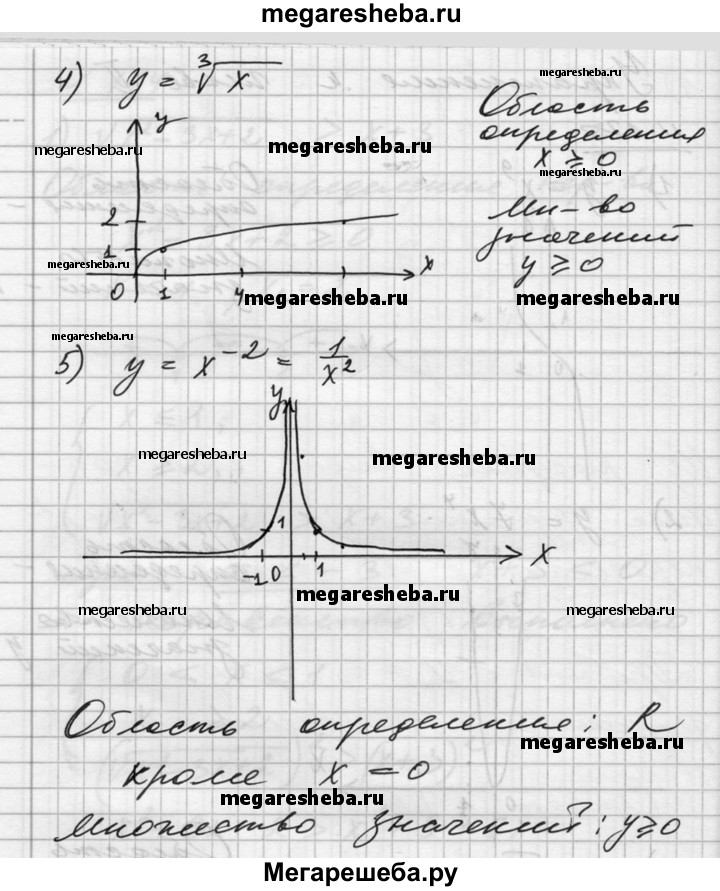 175. Изобразить схематически график функции, указать её об¬ласть определения и множество значений: 1) у = х^9; 2) у = 7х^4; 3)у = √x; 4) у = ^3√х; 5) у = x^-2; 6) у = x^-3.