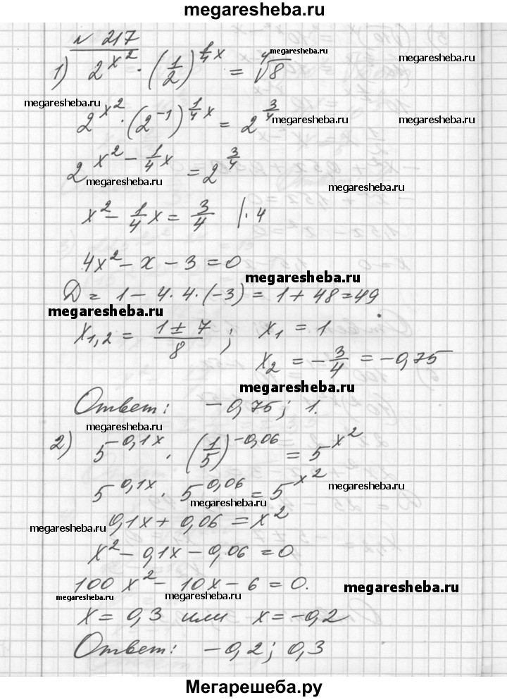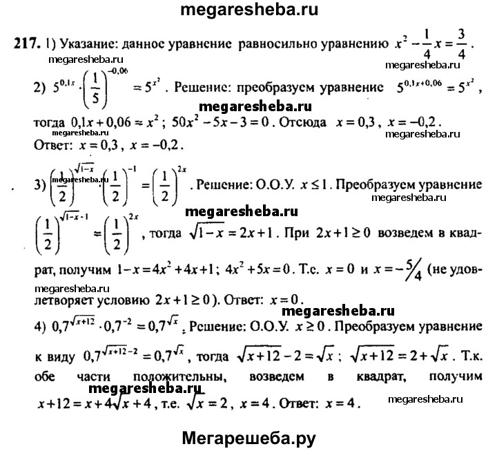 Подробный решебник (ГДЗ) по Алгебре за 10‐11 (десятый‐одиннадцатый) класс - готовый ответ упражнение - 217. Авторы учебника: Алимов, Колягин, Ткачева, Базовый и углубленный уровень. Издательство: Просвещение 2015-2024.