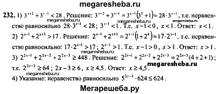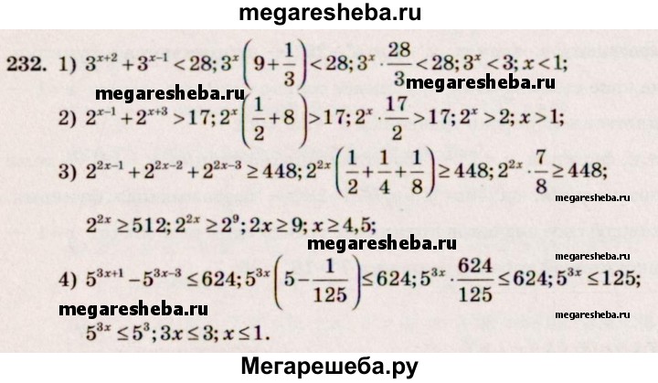 Подробный решебник (ГДЗ) по Алгебре за 10‐11 (десятый‐одиннадцатый) класс - готовый ответ упражнение - 232. Авторы учебника: Алимов, Колягин, Ткачева, Базовый и углубленный уровень. Издательство: Просвещение 2015-2024.