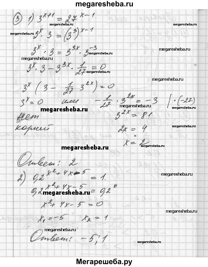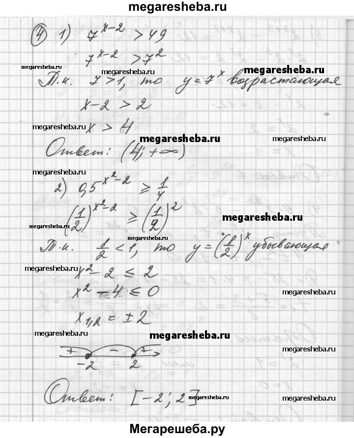 1. Построить схематически график функции: 1) у = (1/5)^x; 2) y = 5^х. 2. Сравнить числа: 1) (1/5)^0,2 и (1/5)^1,2; 2) 5^-0,2 и 5^-1,2. 3. Решить уравнение: 1) З^х+1 = 27^х-1, 2) 0,2^х^2+4х-5 = 1; 3) 2^x + 3 – 2^x + 1 = 12; 4) 4 * 2^2х - 5 * 2^х + 1 = 0. 4. Решить неравенство: 1) 7^х-2 > 49; 2) 0,5^х^2-2 ≥ 1/4.