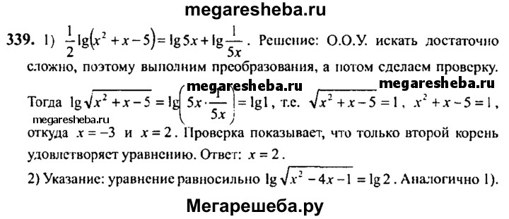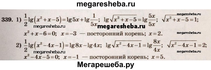 Подробный решебник (ГДЗ) по Алгебре за 10‐11 (десятый‐одиннадцатый) класс - готовый ответ упражнение - 339. Авторы учебника: Алимов, Колягин, Ткачева, Базовый и углубленный уровень. Издательство: Просвещение 2015-2024.