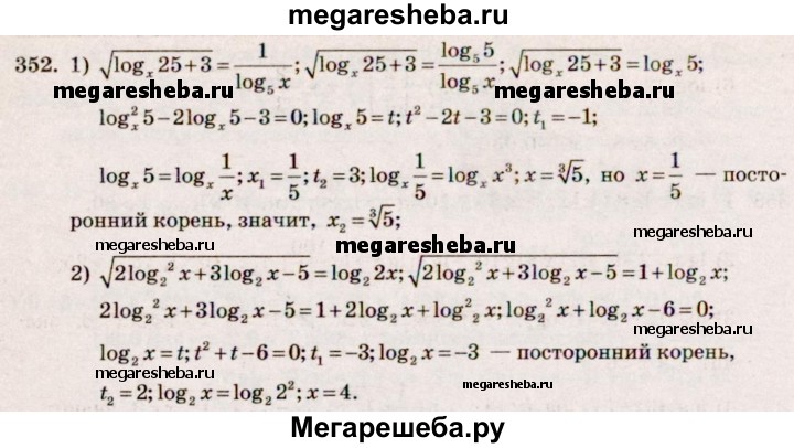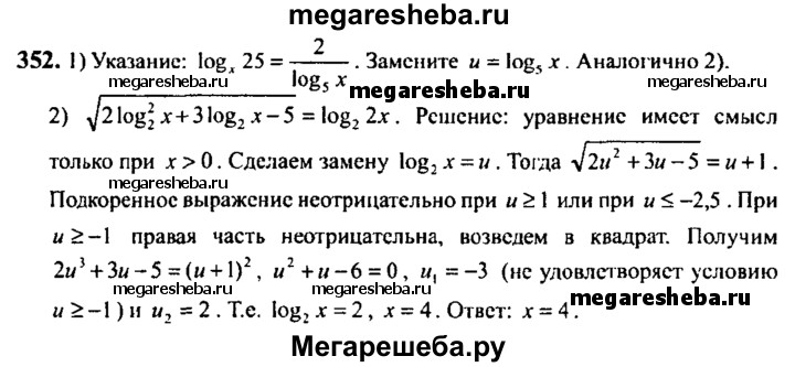 Подробный решебник (ГДЗ) по Алгебре за 10‐11 (десятый‐одиннадцатый) класс - готовый ответ упражнение - 352. Авторы учебника: Алимов, Колягин, Ткачева, Базовый и углубленный уровень. Издательство: Просвещение 2015-2024.