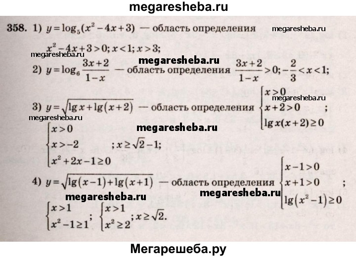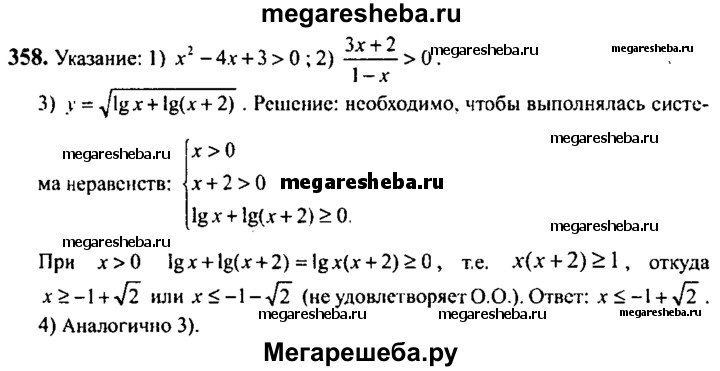 Подробный решебник (ГДЗ) по Алгебре за 10‐11 (десятый‐одиннадцатый) класс - готовый ответ упражнение - 358. Авторы учебника: Алимов, Колягин, Ткачева, Базовый и углубленный уровень. Издательство: Просвещение 2015-2024.