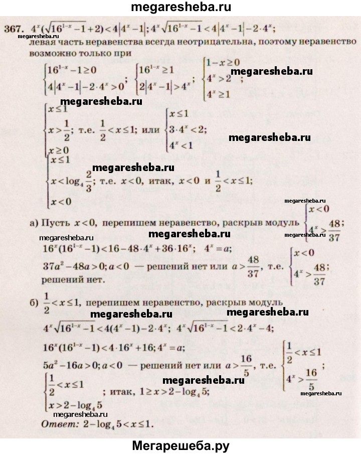 Подробный решебник (ГДЗ) по Алгебре за 10‐11 (десятый‐одиннадцатый) класс - готовый ответ упражнение - 367. Авторы учебника: Алимов, Колягин, Ткачева, Базовый и углубленный уровень. Издательство: Просвещение 2015-2024.