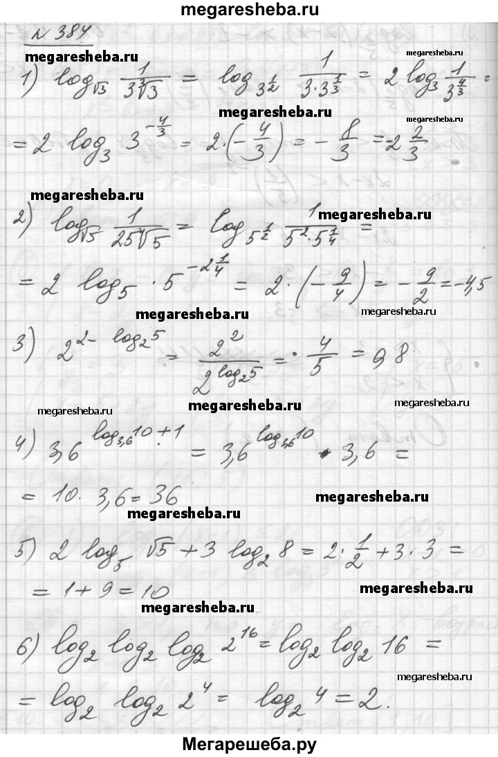 Подробный решебник (ГДЗ) по Алгебре за 10‐11 (десятый‐одиннадцатый) класс - готовый ответ упражнение - 384. Авторы учебника: Алимов, Колягин, Ткачева, Базовый и углубленный уровень. Издательство: Просвещение 2015-2024.