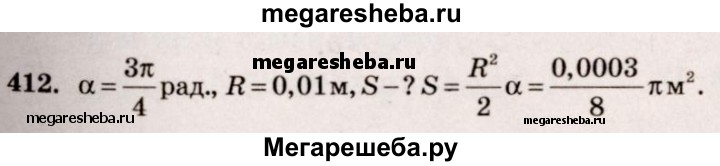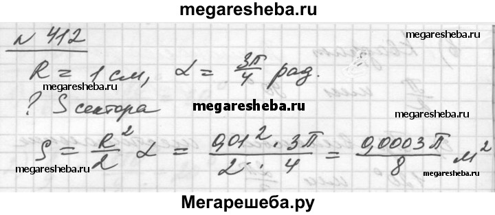 412. Дуге кругового сектора соответствует угол в 3π/4 рад. Найти площадь сектора, если радиус круга равен 1 см.
