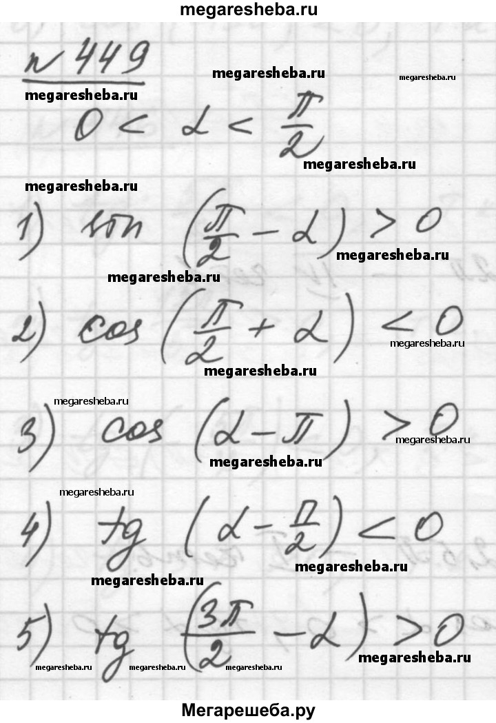 Подробный решебник (ГДЗ) по Алгебре за 10‐11 (десятый‐одиннадцатый) класс - готовый ответ упражнение - 449. Авторы учебника: Алимов, Колягин, Ткачева, Базовый и углубленный уровень. Издательство: Просвещение 2015-2024.