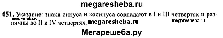 Подробный решебник (ГДЗ) по Алгебре за 10‐11 (десятый‐одиннадцатый) класс - готовый ответ упражнение - 451. Авторы учебника: Алимов, Колягин, Ткачева, Базовый и углубленный уровень. Издательство: Просвещение 2015-2024.