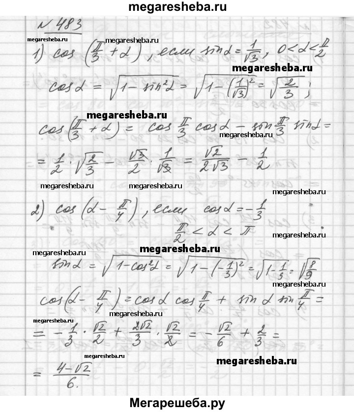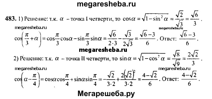 Подробный решебник (ГДЗ) по Алгебре за 10‐11 (десятый‐одиннадцатый) класс - готовый ответ упражнение - 483. Авторы учебника: Алимов, Колягин, Ткачева, Базовый и углубленный уровень. Издательство: Просвещение 2015-2024.