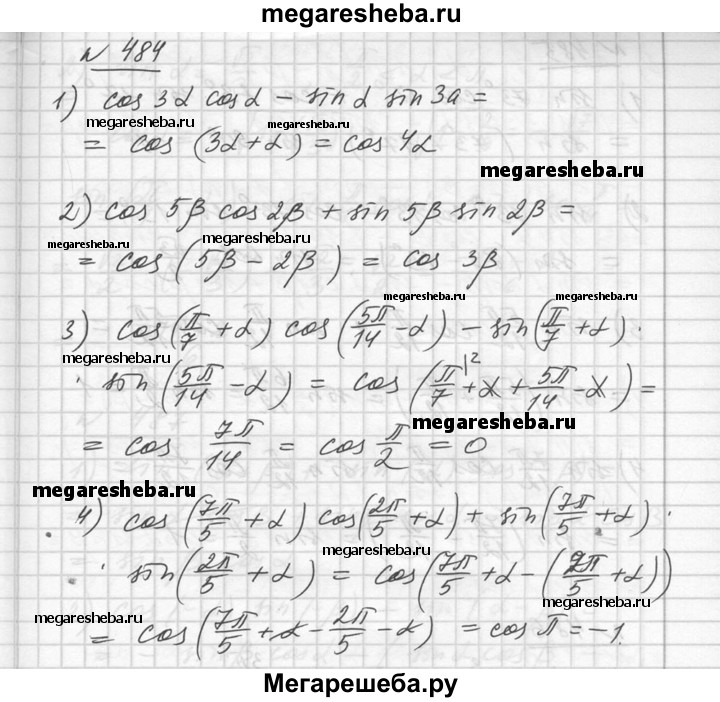 Подробный решебник (ГДЗ) по Алгебре за 10‐11 (десятый‐одиннадцатый) класс - готовый ответ упражнение - 484. Авторы учебника: Алимов, Колягин, Ткачева, Базовый и углубленный уровень. Издательство: Просвещение 2015-2024.