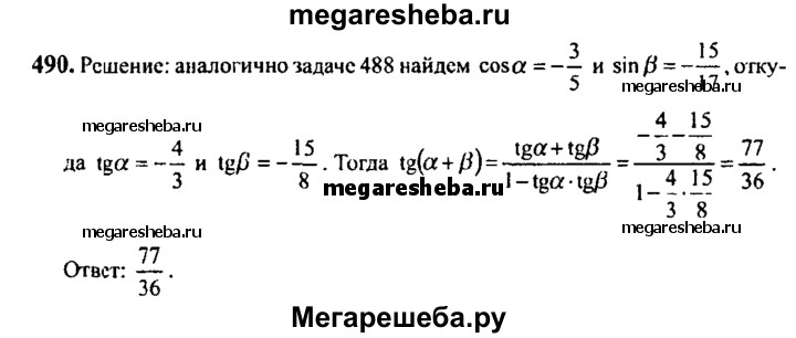 Подробный решебник (ГДЗ) по Алгебре за 10‐11 (десятый‐одиннадцатый) класс - готовый ответ упражнение - 490. Авторы учебника: Алимов, Колягин, Ткачева, Базовый и углубленный уровень. Издательство: Просвещение 2015-2024.
