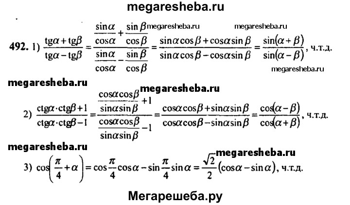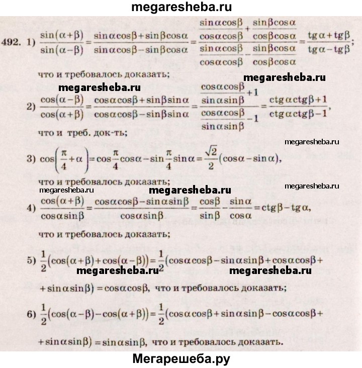 Подробный решебник (ГДЗ) по Алгебре за 10‐11 (десятый‐одиннадцатый) класс - готовый ответ упражнение - 492. Авторы учебника: Алимов, Колягин, Ткачева, Базовый и углубленный уровень. Издательство: Просвещение 2015-2024.