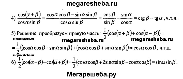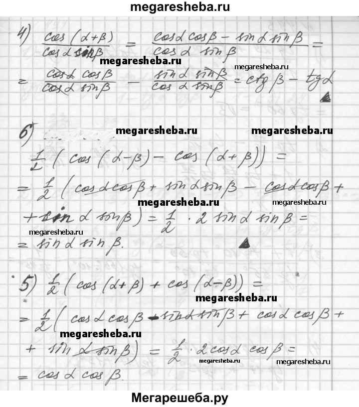 491. Упростить выражение: 1) cos (α - β) - cos (α + β); 2) cos (π/4 + α) cos (π/4 - α) + 1/2 sin^2 a; 3) cos 3α + sin α sin 2α; 4) cos 2α - cos α cos 3α.
