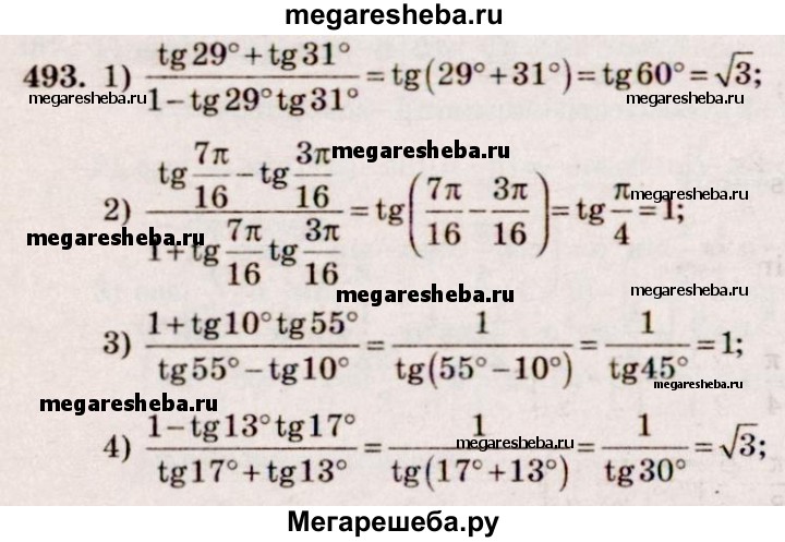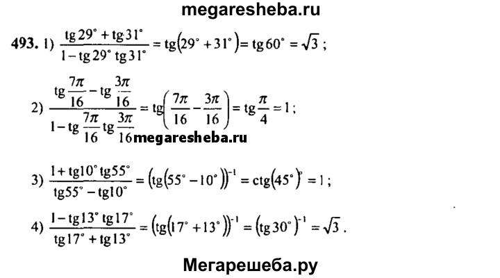 Подробный решебник (ГДЗ) по Алгебре за 10‐11 (десятый‐одиннадцатый) класс - готовый ответ упражнение - 493. Авторы учебника: Алимов, Колягин, Ткачева, Базовый и углубленный уровень. Издательство: Просвещение 2015-2024.