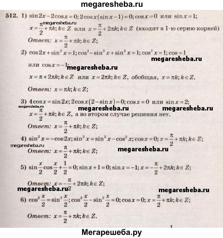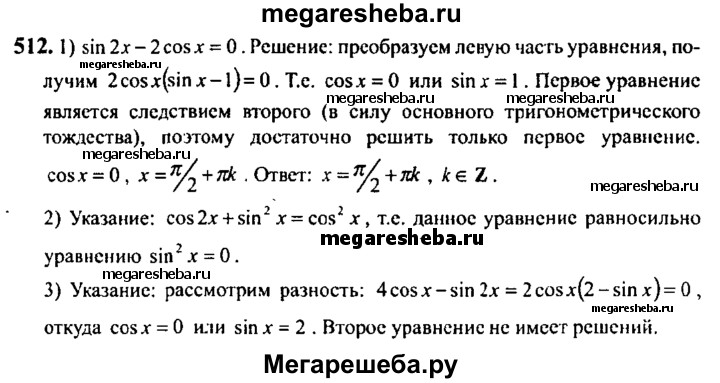 Подробный решебник (ГДЗ) по Алгебре за 10‐11 (десятый‐одиннадцатый) класс - готовый ответ упражнение - 512. Авторы учебника: Алимов, Колягин, Ткачева, Базовый и углубленный уровень. Издательство: Просвещение 2015-2024.