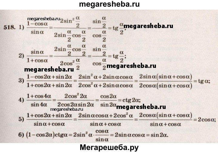 Подробный решебник (ГДЗ) по Алгебре за 10‐11 (десятый‐одиннадцатый) класс - готовый ответ упражнение - 518. Авторы учебника: Алимов, Колягин, Ткачева, Базовый и углубленный уровень. Издательство: Просвещение 2015-2024.