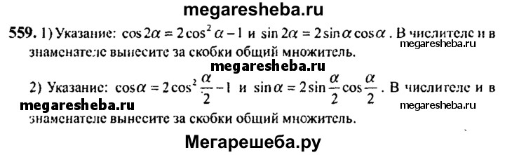 Подробный решебник (ГДЗ) по Алгебре за 10‐11 (десятый‐одиннадцатый) класс - готовый ответ упражнение - 559. Авторы учебника: Алимов, Колягин, Ткачева, Базовый и углубленный уровень. Издательство: Просвещение 2015-2024.