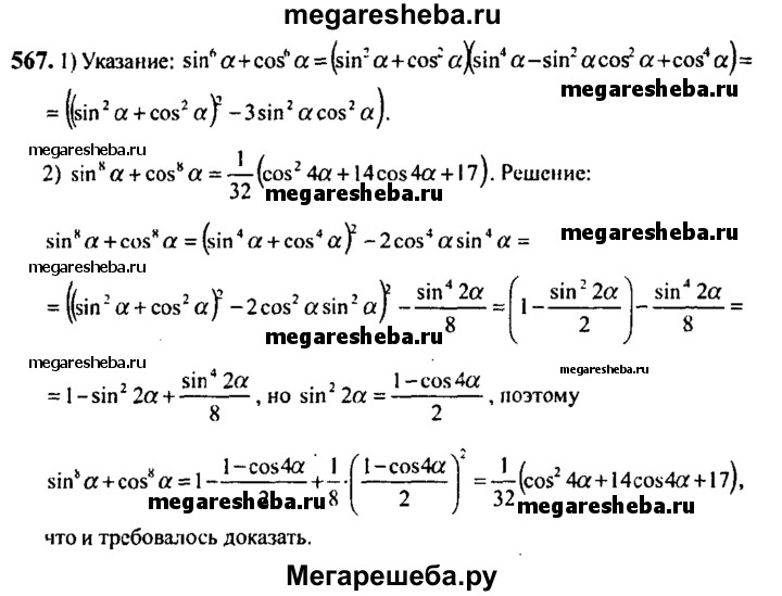 Подробный решебник (ГДЗ) по Алгебре за 10‐11 (десятый‐одиннадцатый) класс - готовый ответ упражнение - 567. Авторы учебника: Алимов, Колягин, Ткачева, Базовый и углубленный уровень. Издательство: Просвещение 2015-2024.