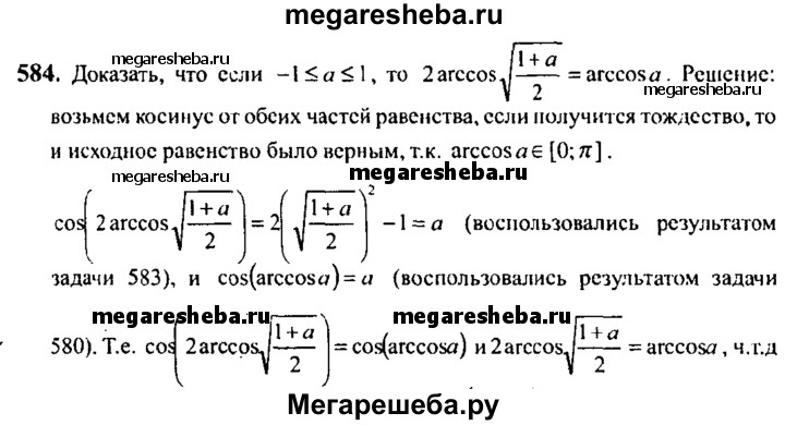 Подробный решебник (ГДЗ) по Алгебре за 10‐11 (десятый‐одиннадцатый) класс - готовый ответ упражнение - 584. Авторы учебника: Алимов, Колягин, Ткачева, Базовый и углубленный уровень. Издательство: Просвещение 2015-2024.