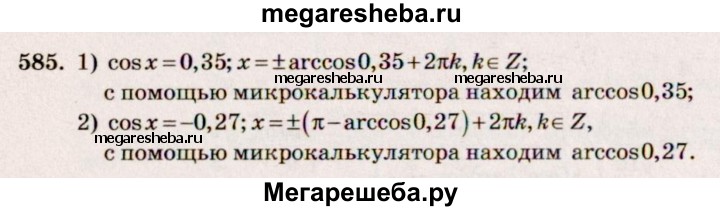 Подробный решебник (ГДЗ) по Алгебре за 10‐11 (десятый‐одиннадцатый) класс - готовый ответ упражнение - 585. Авторы учебника: Алимов, Колягин, Ткачева, Базовый и углубленный уровень. Издательство: Просвещение 2015-2024.