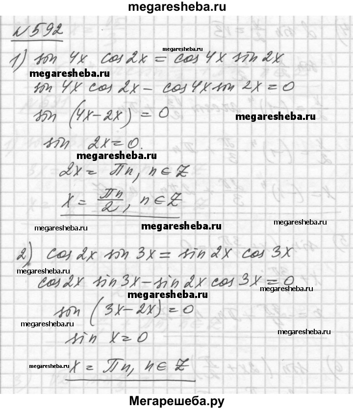 Подробный решебник (ГДЗ) по Алгебре за 10‐11 (десятый‐одиннадцатый) класс - готовый ответ упражнение - 592. Авторы учебника: Алимов, Колягин, Ткачева, Базовый и углубленный уровень. Издательство: Просвещение 2015-2024.