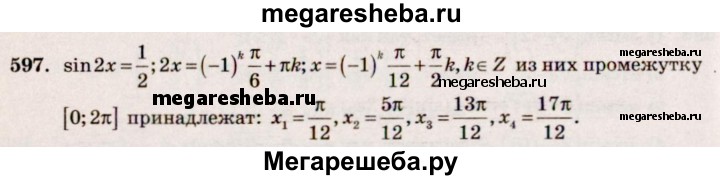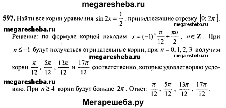 Подробный решебник (ГДЗ) по Алгебре за 10‐11 (десятый‐одиннадцатый) класс - готовый ответ упражнение - 597. Авторы учебника: Алимов, Колягин, Ткачева, Базовый и углубленный уровень. Издательство: Просвещение 2015-2024.
