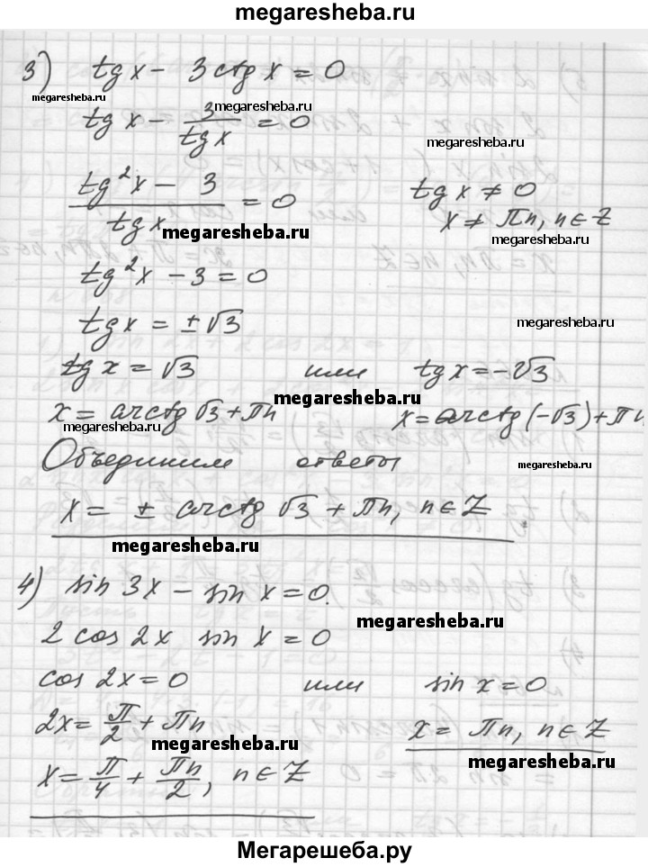 1. Найти значение выражения: 1) arccos 1 + arcsin 0; 2) arccos (- 1/2) – arcsin √3/2. 2. Решить уравнение: 1) sin Зх cos x - sin x cos 3x = 1; 2) 2 cos^2 x + 5 cos x = 3; 3) tg x - 3 ctg x = 0; 4) sin 3x - sin x = 0; 5) 2 sin x + sin 2x = 0.