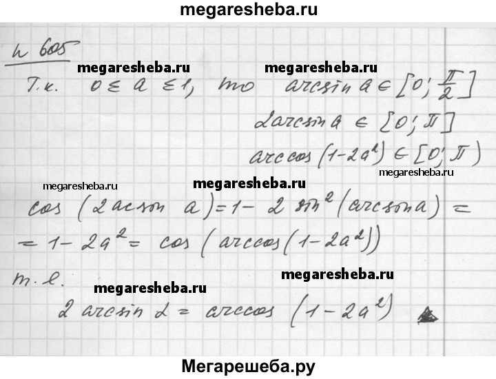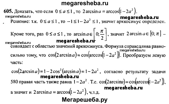 Подробный решебник (ГДЗ) по Алгебре за 10‐11 (десятый‐одиннадцатый) класс - готовый ответ упражнение - 605. Авторы учебника: Алимов, Колягин, Ткачева, Базовый и углубленный уровень. Издательство: Просвещение 2015-2024.