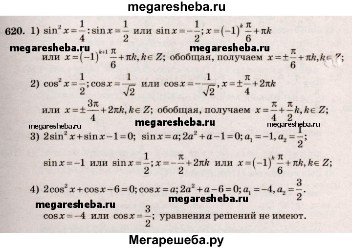 Подробный решебник (ГДЗ) по Алгебре за 10‐11 (десятый‐одиннадцатый) класс - готовый ответ упражнение - 620. Авторы учебника: Алимов, Колягин, Ткачева, Базовый и углубленный уровень. Издательство: Просвещение 2015-2024.