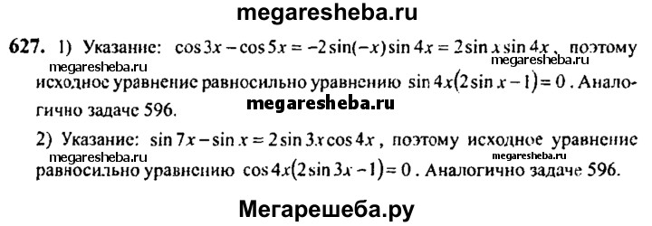 Подробный решебник (ГДЗ) по Алгебре за 10‐11 (десятый‐одиннадцатый) класс - готовый ответ упражнение - 627. Авторы учебника: Алимов, Колягин, Ткачева, Базовый и углубленный уровень. Издательство: Просвещение 2015-2024.