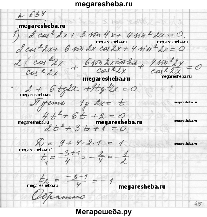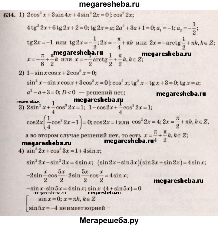 Подробный решебник (ГДЗ) по Алгебре за 10‐11 (десятый‐одиннадцатый) класс - готовый ответ упражнение - 634. Авторы учебника: Алимов, Колягин, Ткачева, Базовый и углубленный уровень. Издательство: Просвещение 2015-2024.
