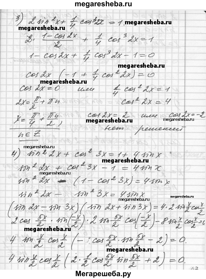 634. 1) 2 cos^2 2x + 3 sin 4x + 4 sin^2 2x = 0; 2) 1 - sin x cos x + 2 cos^2 x = 0; 3) 2 sin^2 x + 1/4 cos^3 2x= 1; 4) sin^2 2x + cos^2 Зх = 1 + 4 sin x.